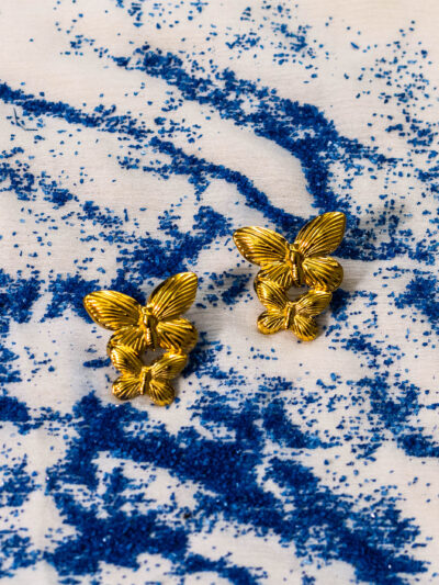 Charming butterfly stud earrings: Double butterfly design, gold plated, delicate and hypoallergenic.