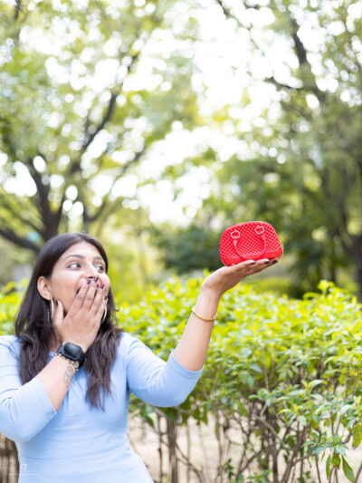 Carry elegance in your hands with this handmade crochet mini sling bag, featuring a soft white shade, lace bow, and pearl embellishment. Perfect for a trendy yet vintage touch!