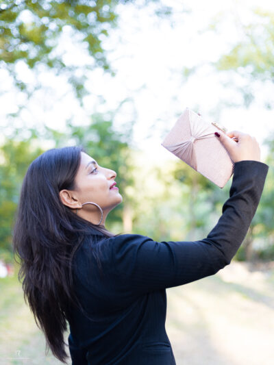Upgrade your evening look with this stylish pastel pink satin clutch, featuring a pleated bow design, metallic accents, and a sleek handle—perfect for weddings, parties, and special occasions!