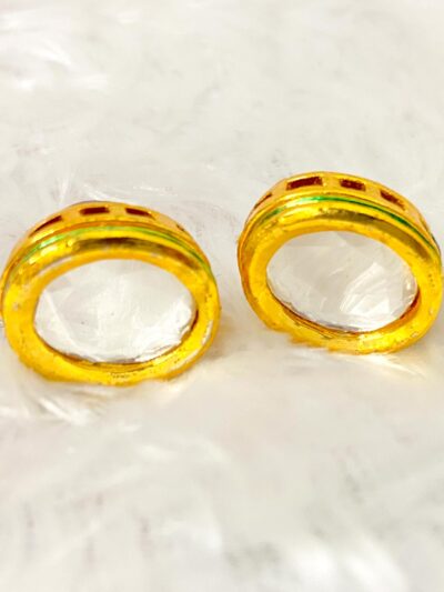 Sanskriti Sparkles Artificial Jewellery’ Golden Kundan Earrings are a timeless piece of jewelry that blend the classic beauty of Kundan work with the warmth and richness of gold, perfect for adding elegance to any ethnic outfit.
