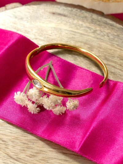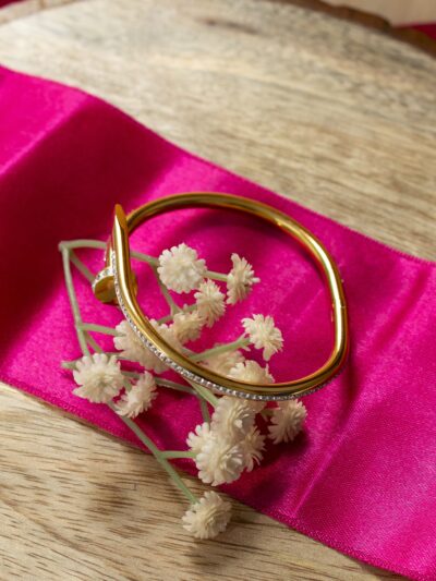 ₹299.00Description of the Product: This elegant gold bangle features a distinctive zigzag pattern, complemented by a row of sparkling diamonds embedded along the center. The intricate design enhances its modern yet timeless appeal, making it a standout accessory. Features of the Product: Premium gold construction with a polished finish Zigzag…