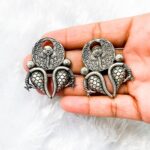 Sanskriti Sparkles Artificial Jewellery’ brass coin and shell studs feature a beautiful blend of nature and tradition. The intricate design adds a unique, earthy elegance, making these studs a perfect accessory for any occasion.