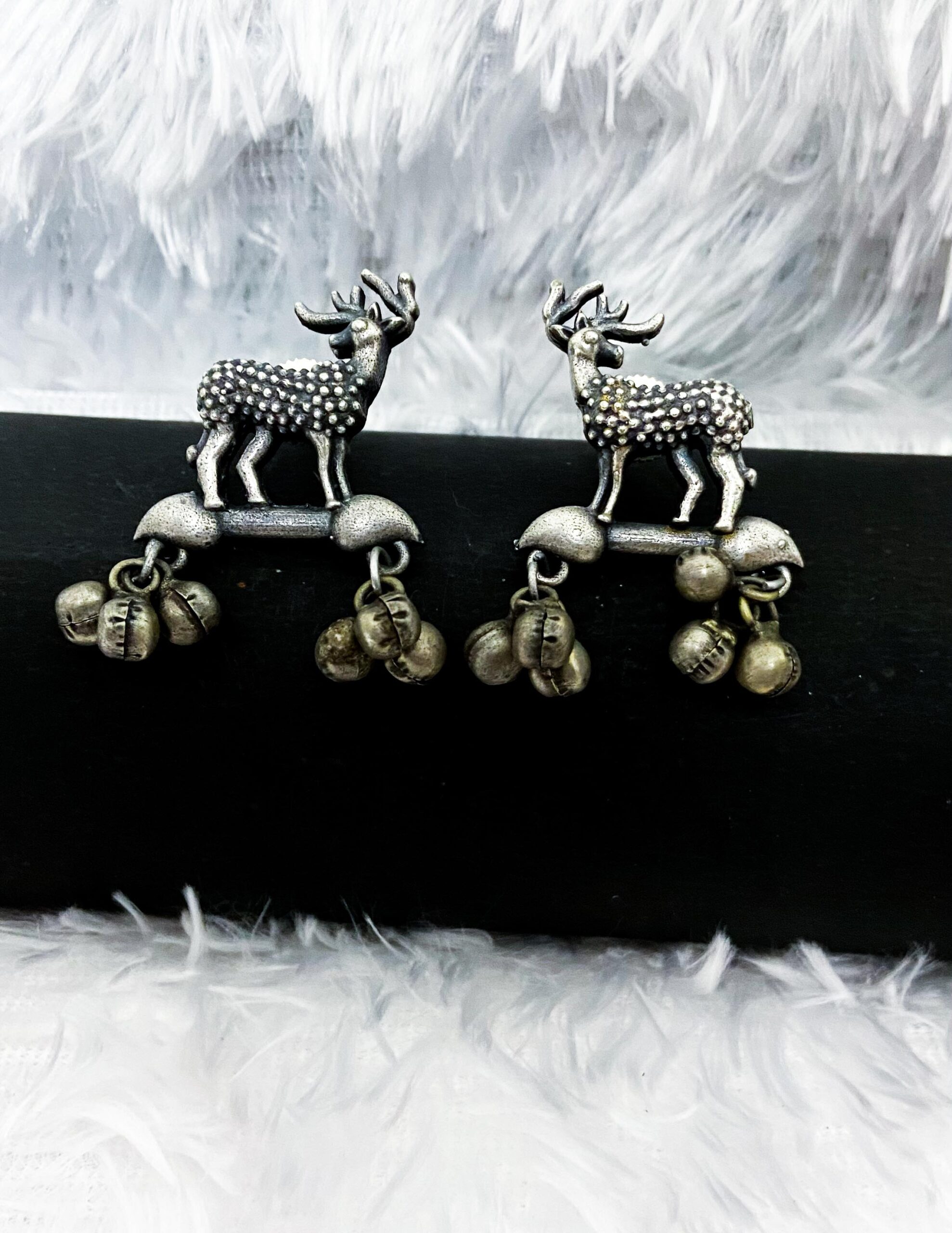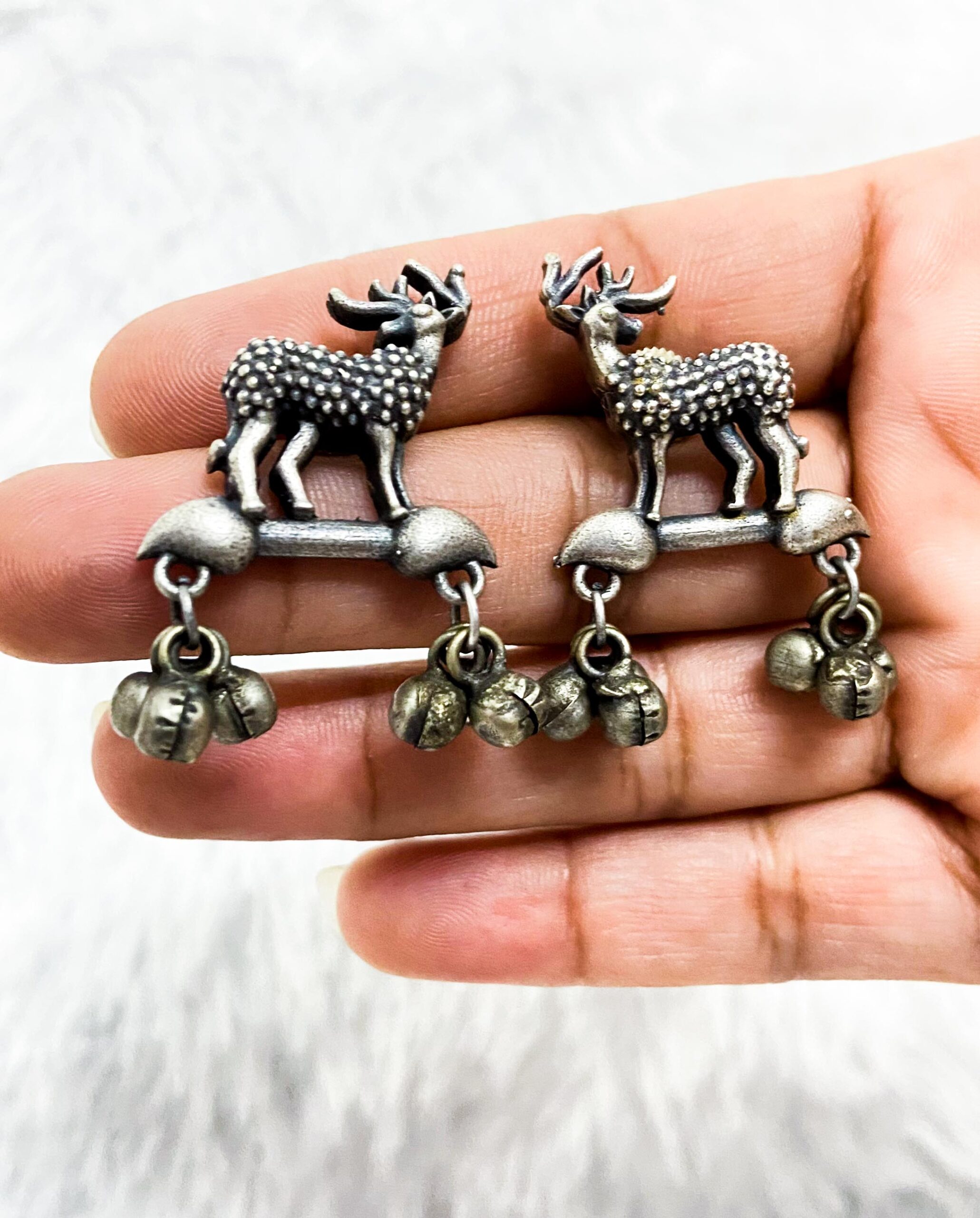 Sanskriti Sparkles Artificial Jewellery’ brass deer with ghungroo studs combine playful wildlife motifs with traditional ghungroo accents. These charming studs bring a unique, cultural touch, adding elegance and movement to any outfit.