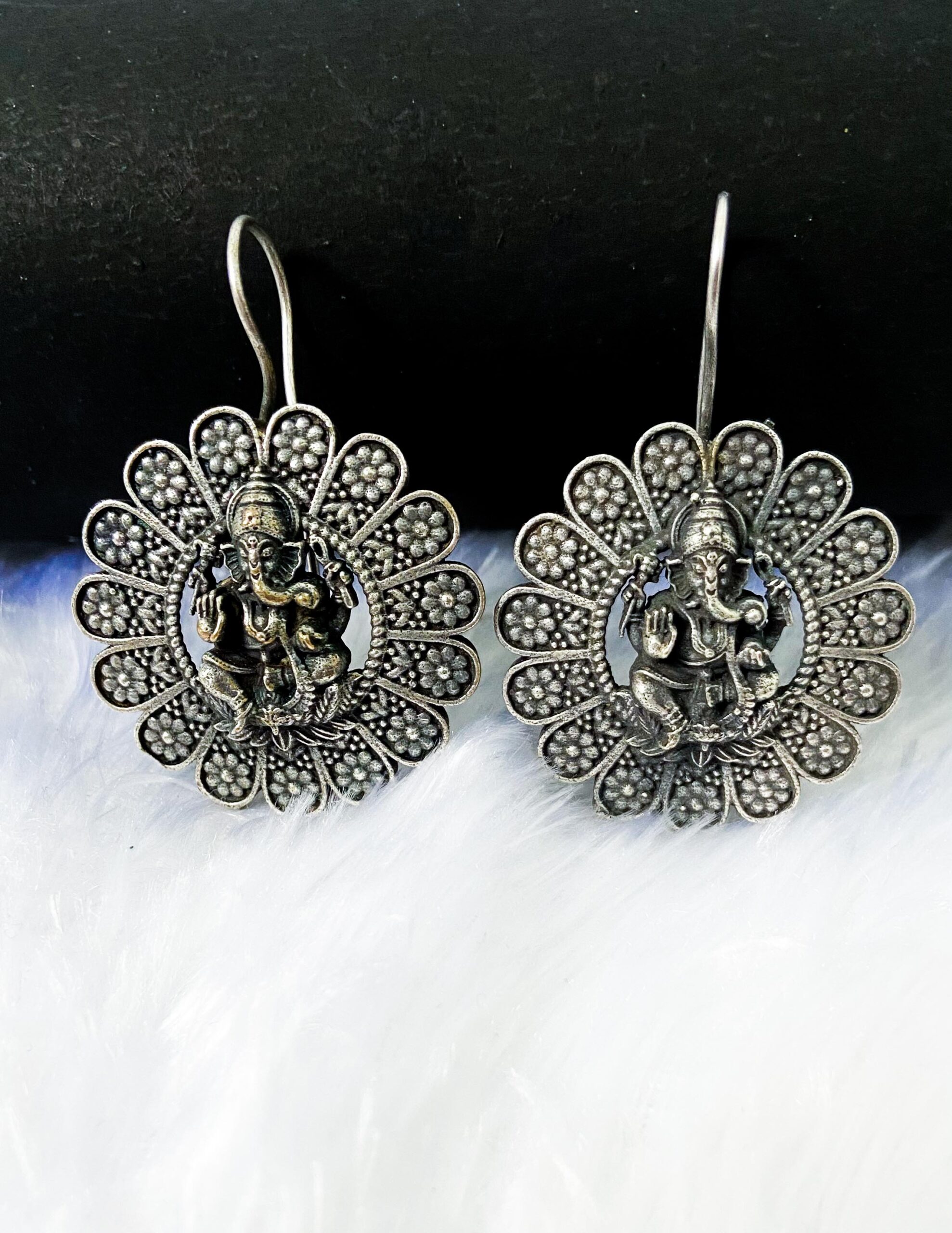Sanskriti Sparkles Artificial Jewellery’ brass Lord Ganesha loops feature intricate designs that symbolize wisdom and prosperity. These divine, elegantly crafted earrings add a spiritual and sophisticated touch, perfect for any festive or formal occasion.