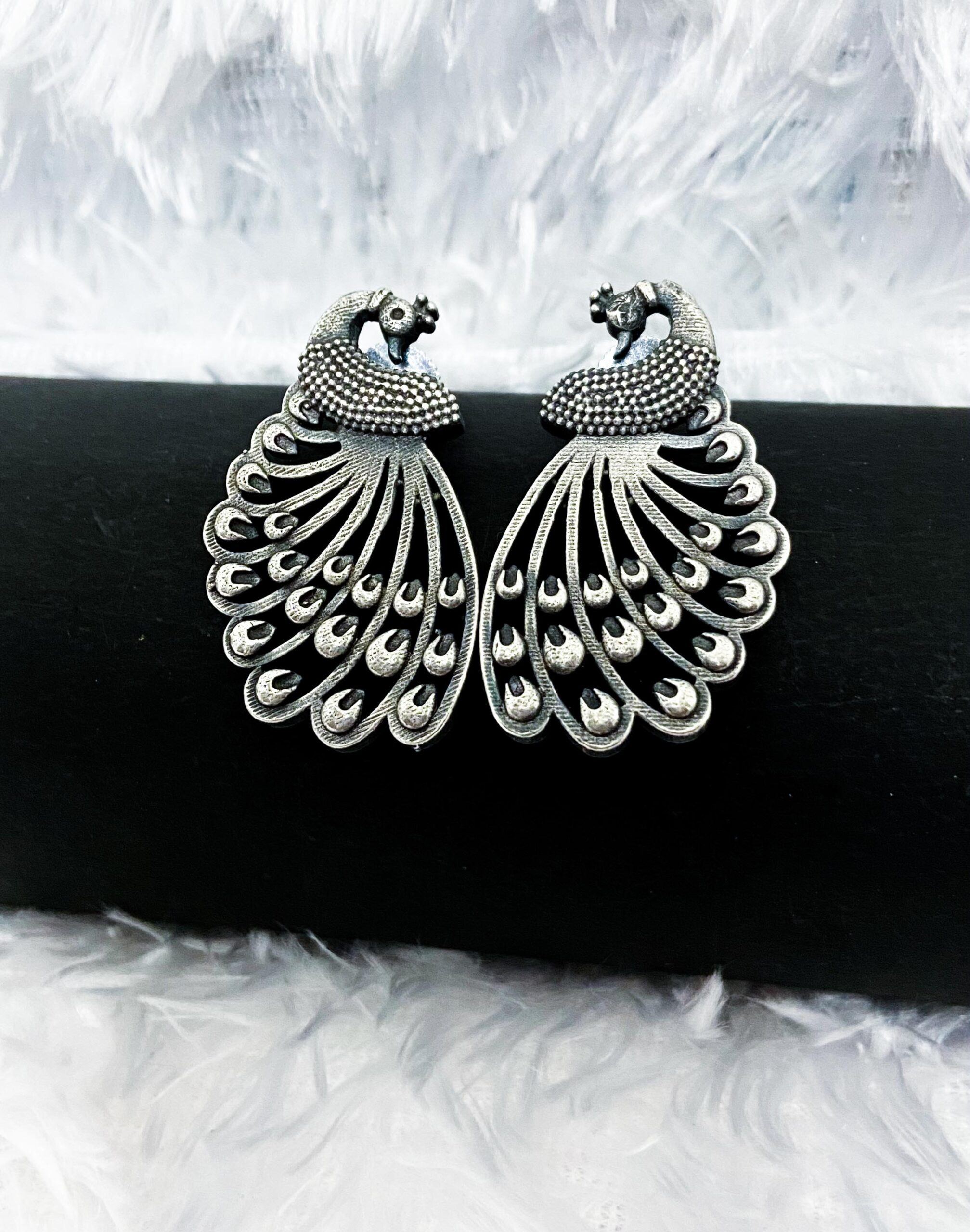 Sanskriti Sparkles Artificial Jewellery’ brass peacock studs feature intricate detailing, embodying elegance and cultural charm. These timeless studs add a regal touch to any look, making them a perfect blend of tradition and style.