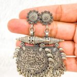 Sanskriti Sparkles Artificial Jewellery’ brass shield-shaped earrings offer a bold, modern design with timeless appeal. The intricate detailing and strong shape make these earrings a striking statement piece for any occasion.