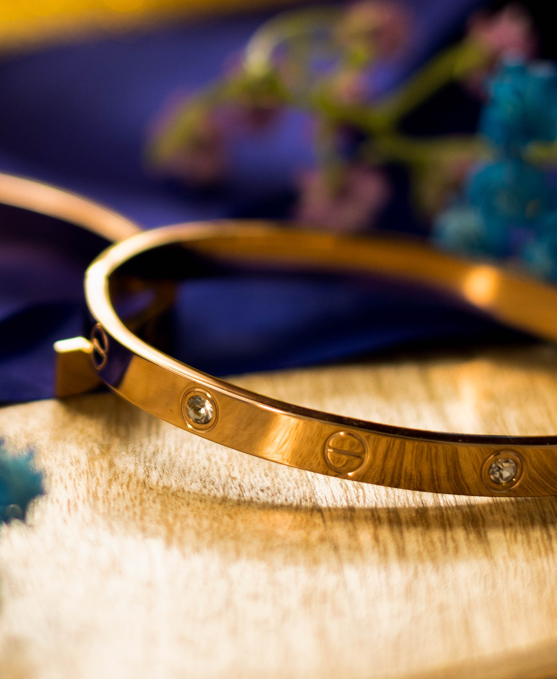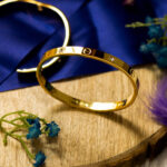 The iconic Cartier Love Bracelet, a timeless symbol of love and commitment. This luxurious bracelet features the signature screw motifs and diamond accents.