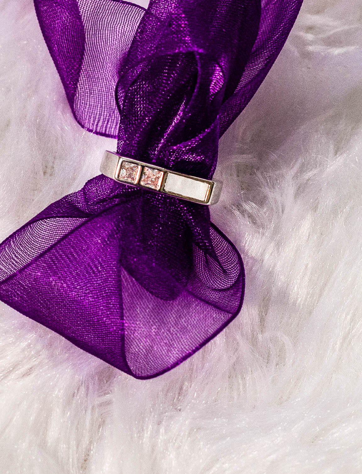 This Crystal Accent Stacking Ring features a slim, silver-plated band adorned with petite, sparkling crystals. Its delicate design makes it perfect for stacking with other rings or wearing alone for a touch of subtle glamour. Adjustable sizing ensures a comfortable fit. Hypoallergenic for sensitive skin.