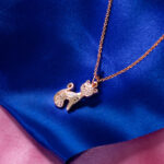 A charming and whimsical necklace featuring a delicate cat pendant. The cat is adorned with sparkling crystals, adding a touch of glamour and playful elegance.