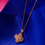 A delicate and charming necklace featuring a clover-shaped pendant. The clover is embellished with sparkling crystals, adding a touch of good luck and subtle sparkle.