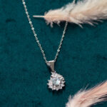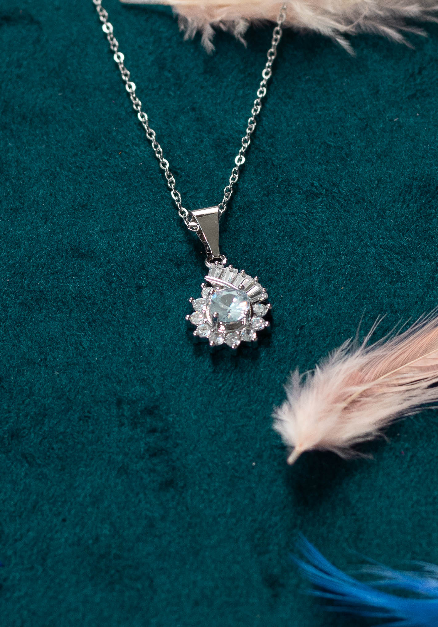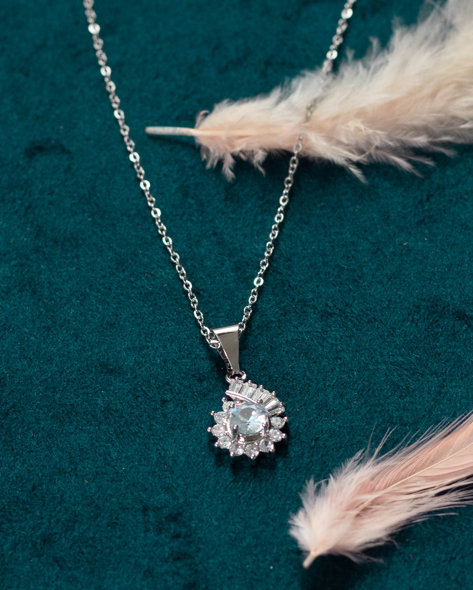 This dazzling necklace features a central, larger crystal surrounded by a cluster of smaller sparkling crystals, creating a radiant and eye-catching pendant. The elegant design adds a touch of glamour to any outfit, perfect for both everyday wear and special occasions. The delicate chain complements the pendant’s sparkle.