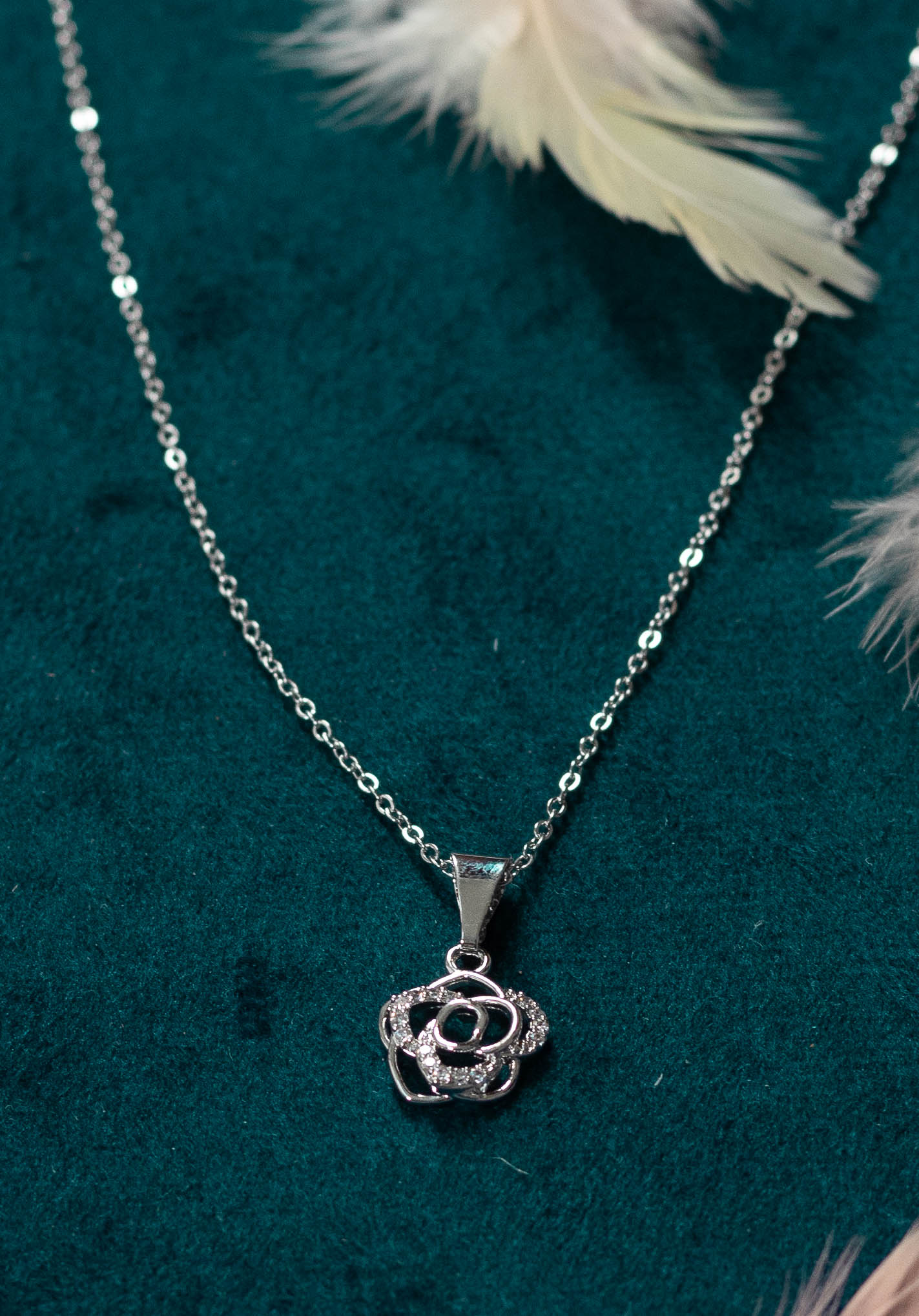 A dainty rose pendant necklace adorned with sparkling crystals adds a touch of feminine elegance for everyday wear or special occasions.