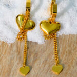 These charming earrings feature delicate gold-plated hearts dangling from a fine chain, creating a playful and elegant look. The secure lever back closure ensures comfortable wear, making them perfect for adding a touch of romance to any occasion