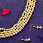 This Five-Strand Pearl & Crystal Necklace Set features a layered pearl necklace with crystal accents and matching earrings. The gold-plated finish adds a touch of classic elegance. Perfect for special occasions or adding a touch of glamour to everyday wear.