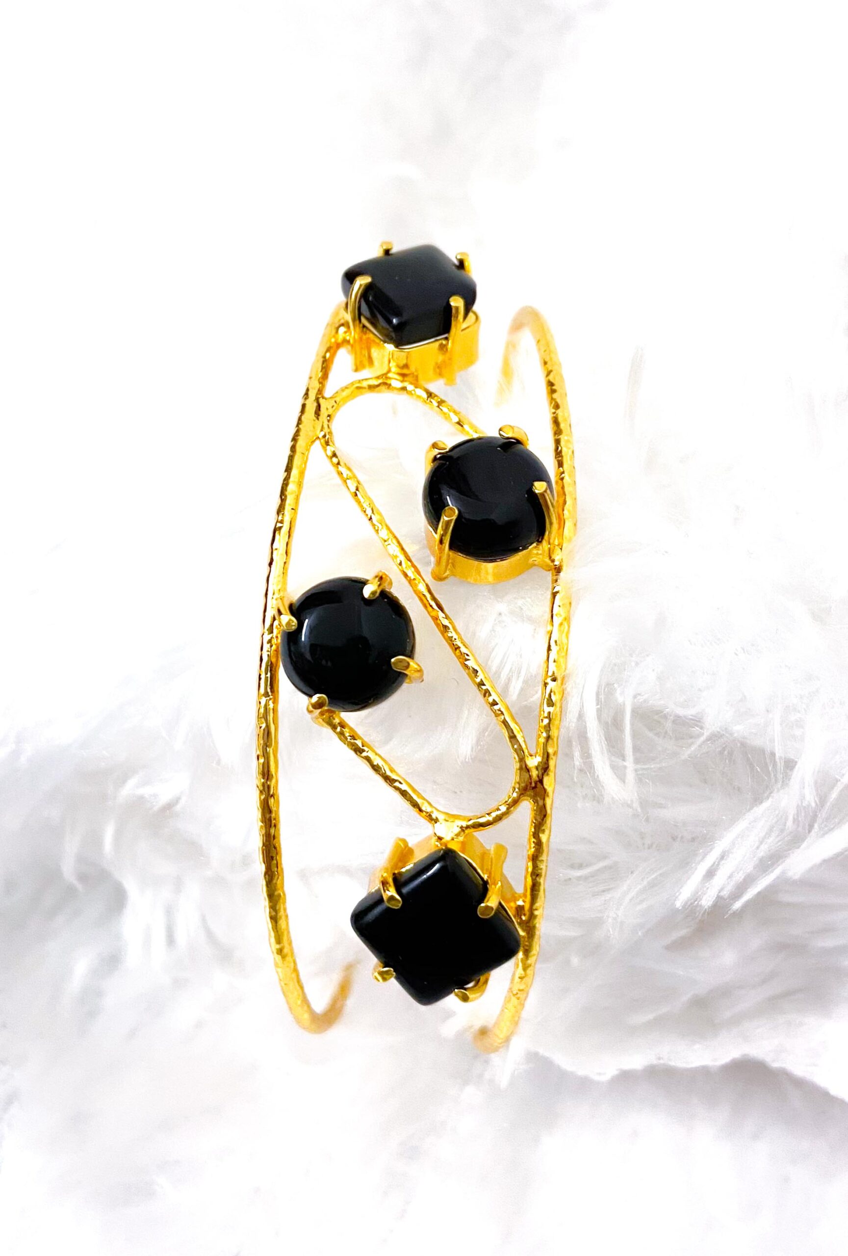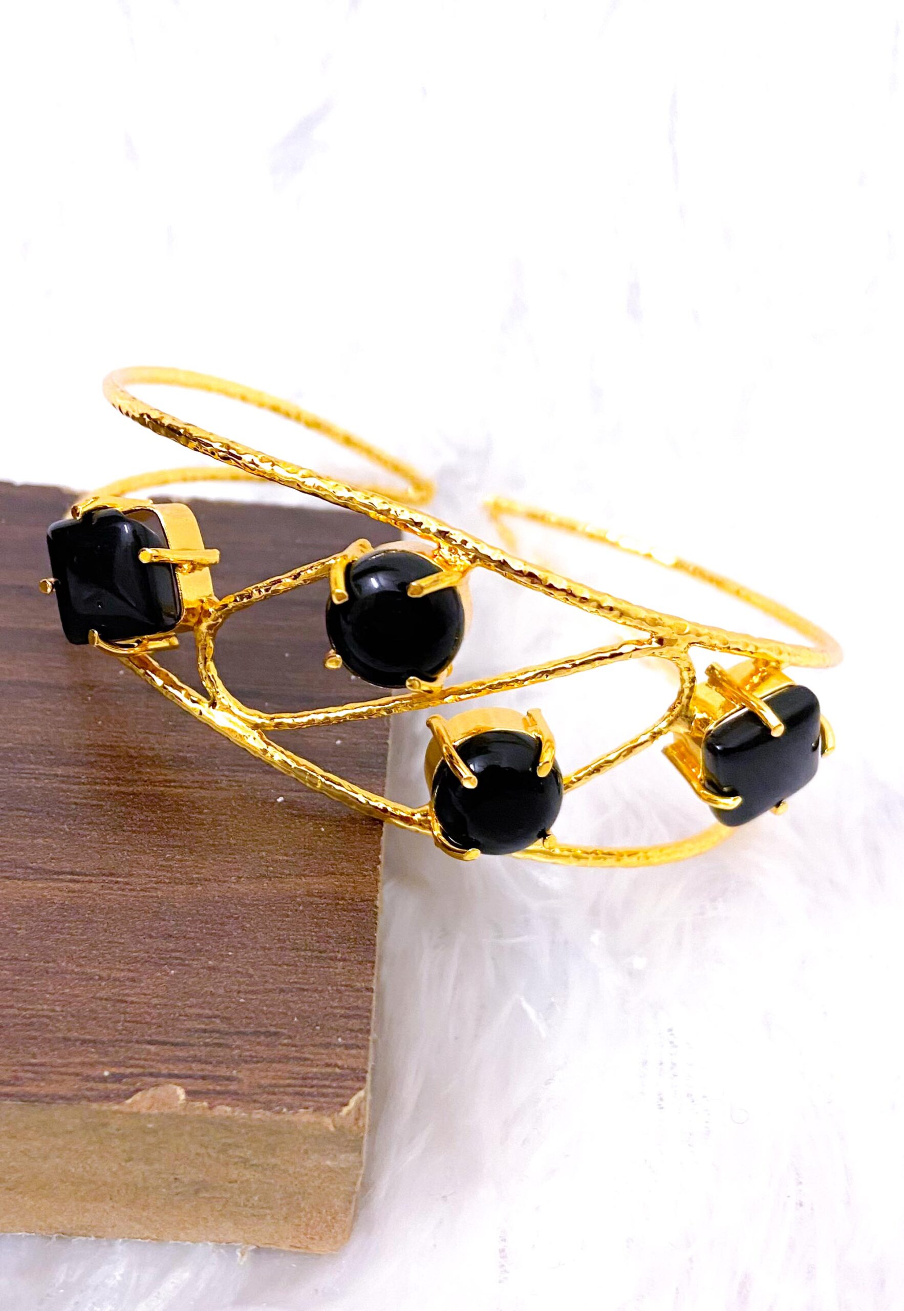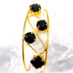 Trendy Golden bracelets with stones (black stones)