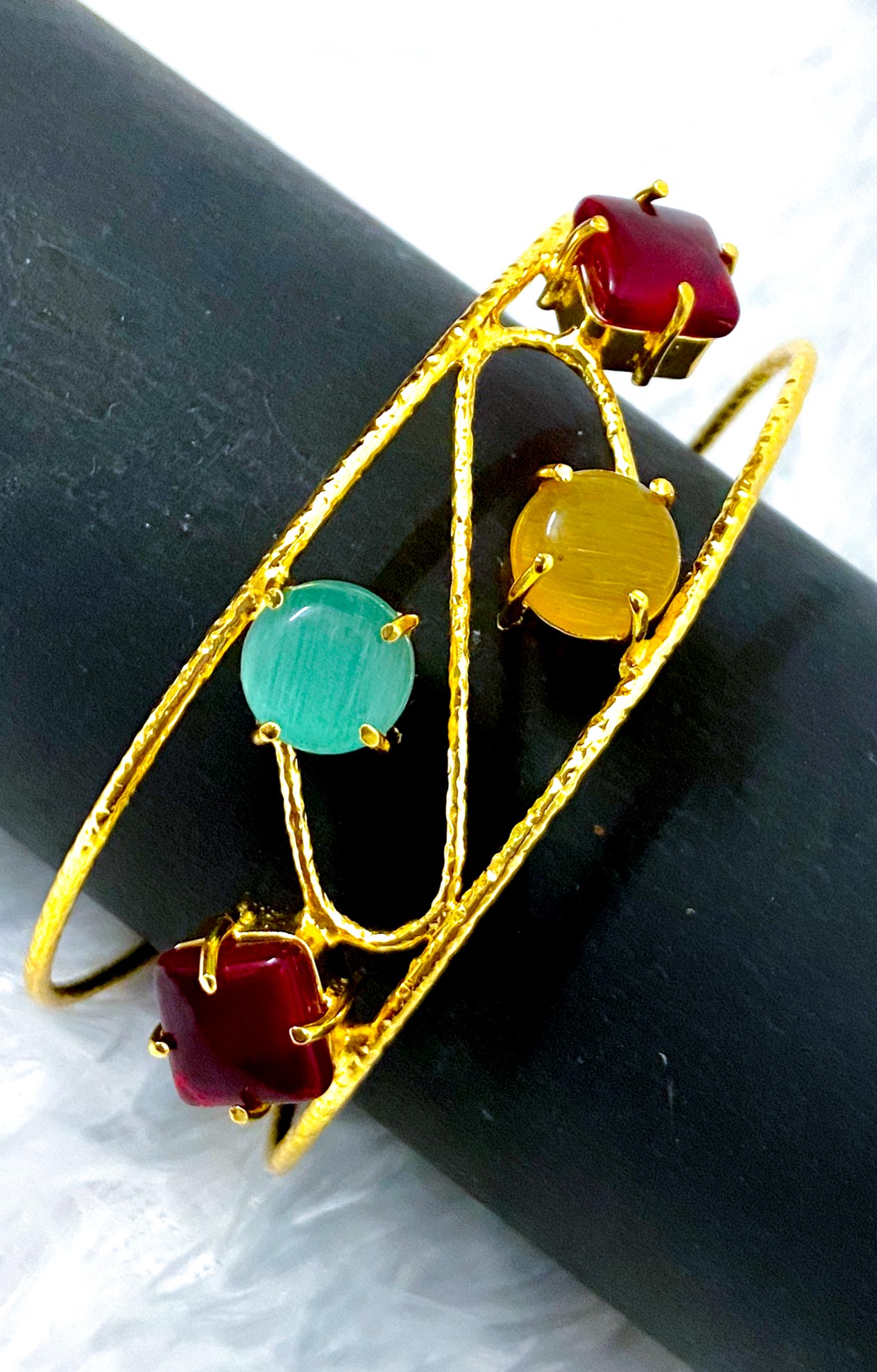 Trendy Golden bracelets with stones (multi color stones)