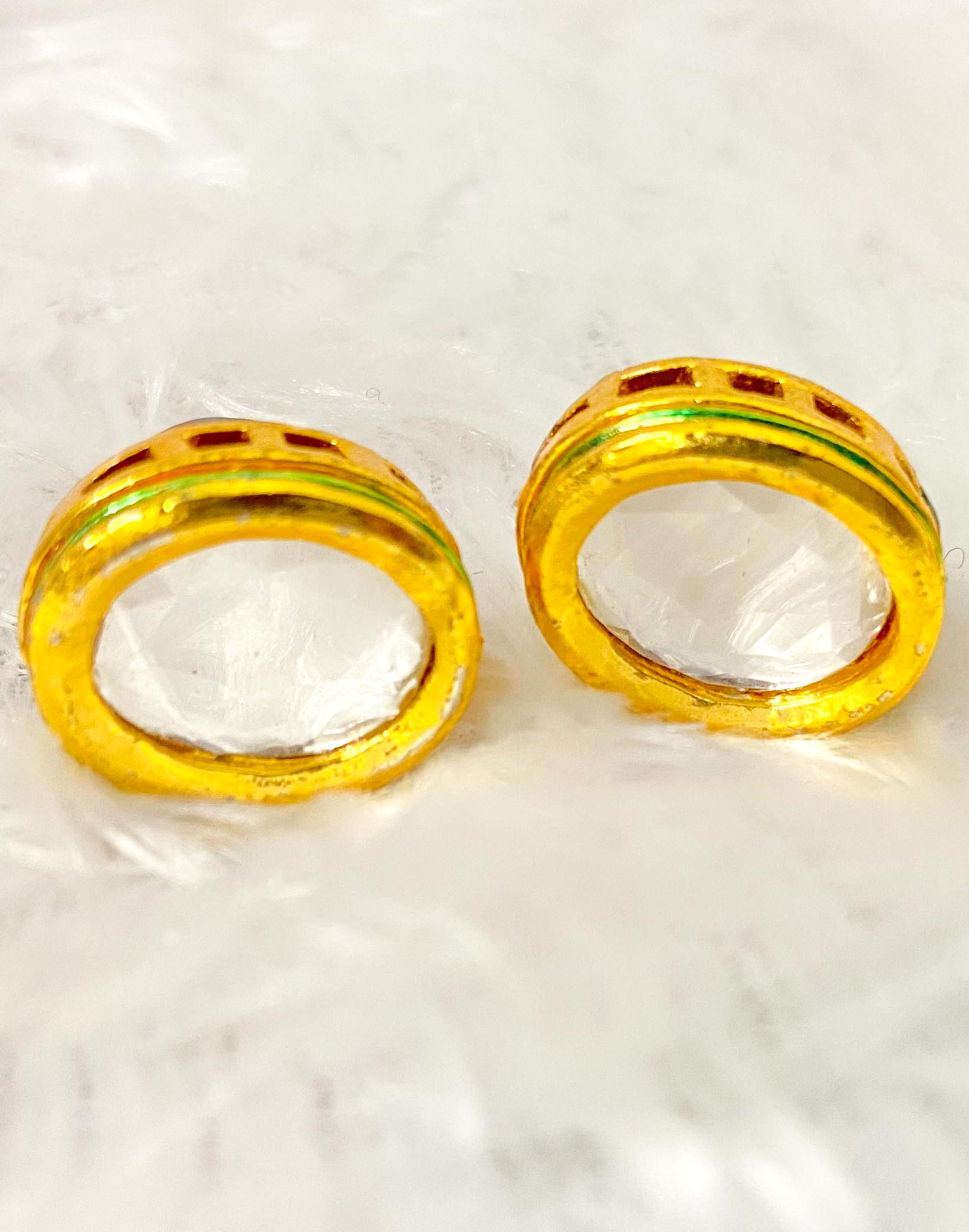 Sanskriti Sparkles Artificial Jewellery’ Golden Kundan Earrings are a timeless piece of jewelry that blend the classic beauty of Kundan work with the warmth and richness of gold, perfect for adding elegance to any ethnic outfit.