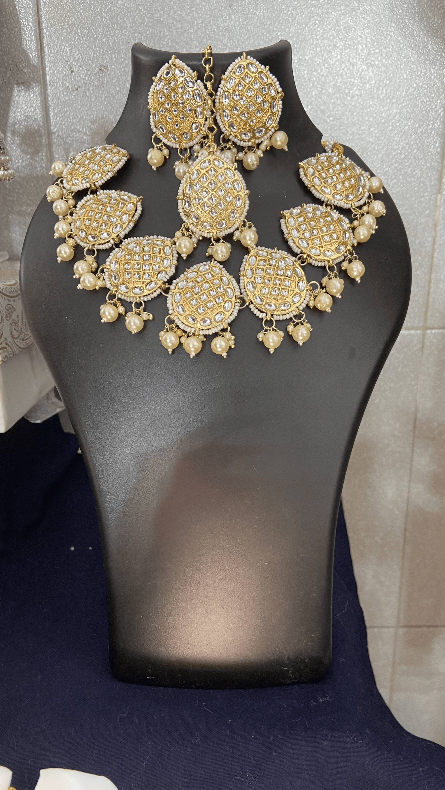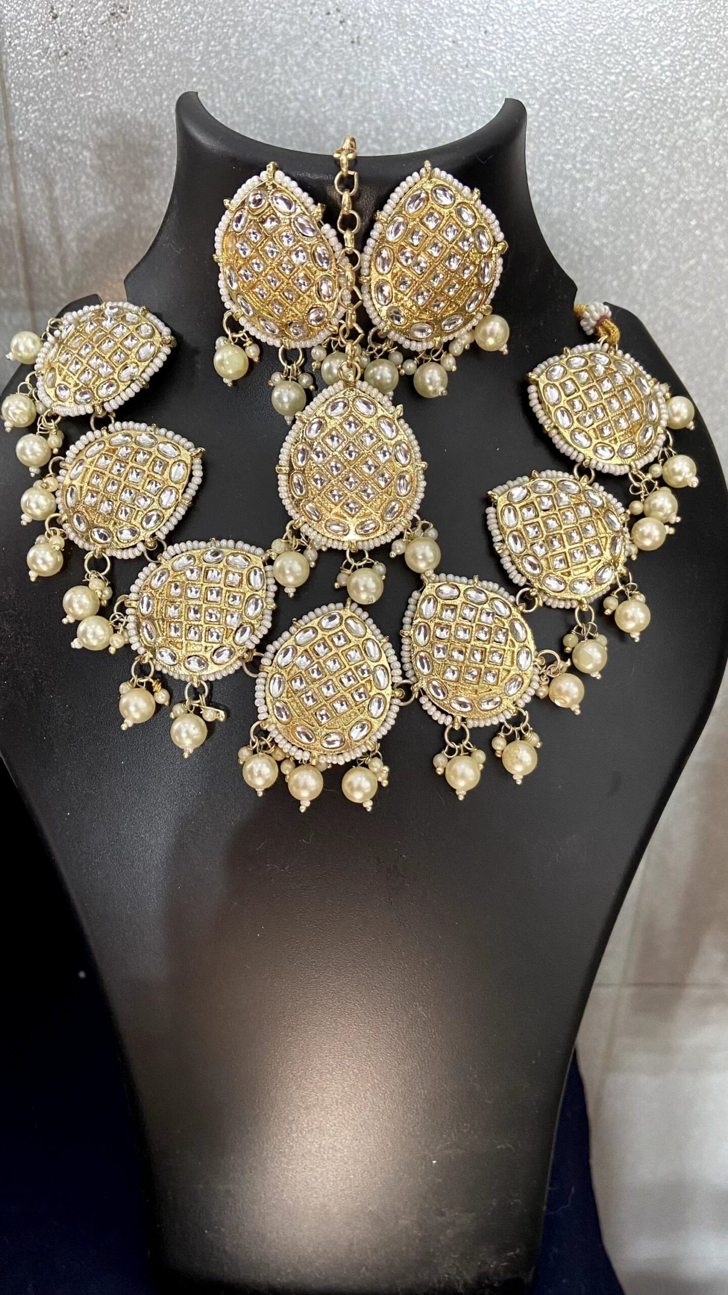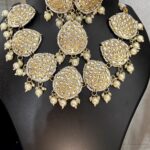 Sanskrit Sparkles Artificial Jewellery’ A golden Kundan set adorned with white pearls is a timeless and elegant piece. Whether you’re styling it for a wedding, festive occasion, or a special celebration, it perfectly complements traditional Indian attire. Would you like suggestions on how to style it, care tips, or perhaps a tagline for promotion?