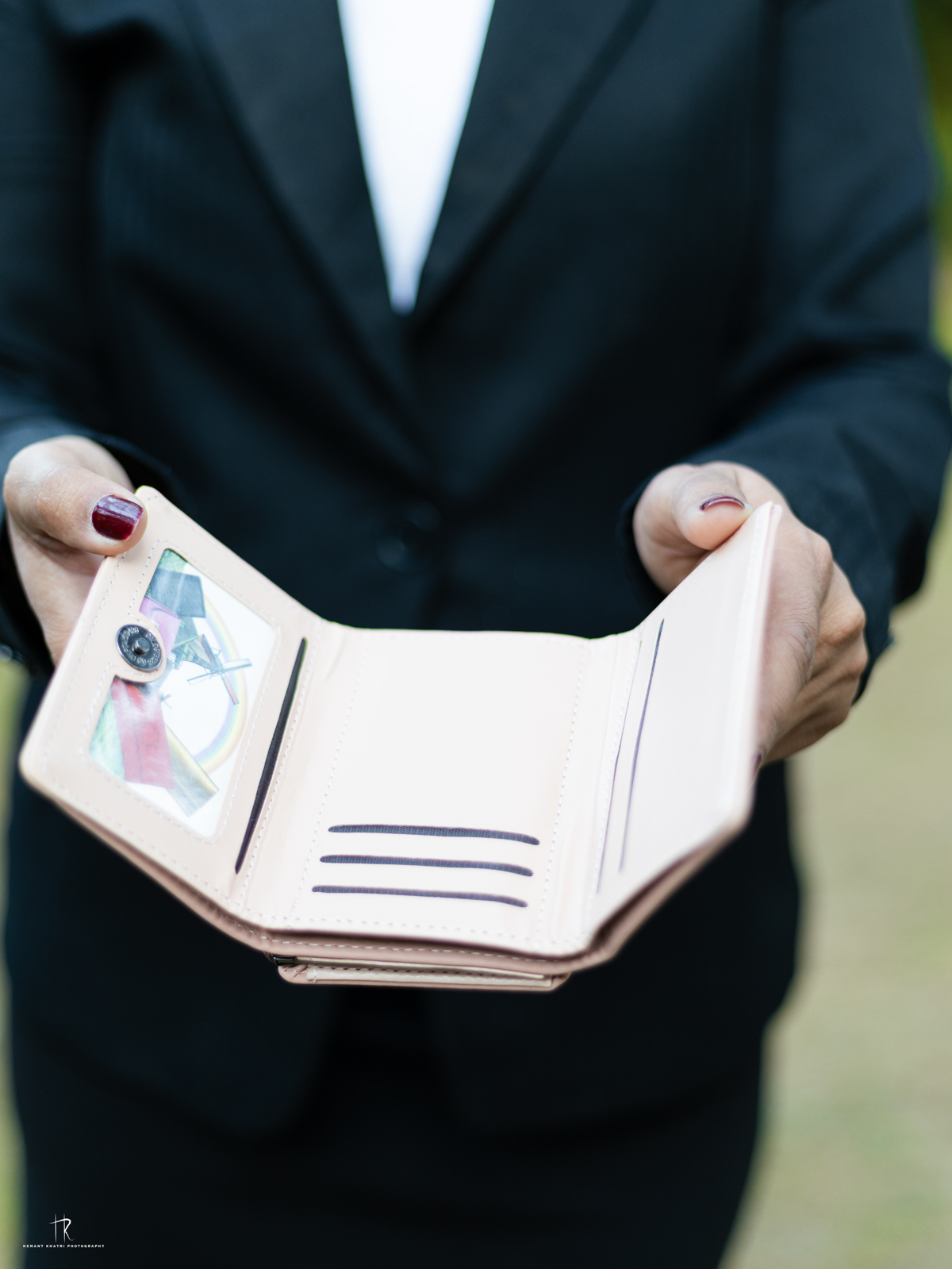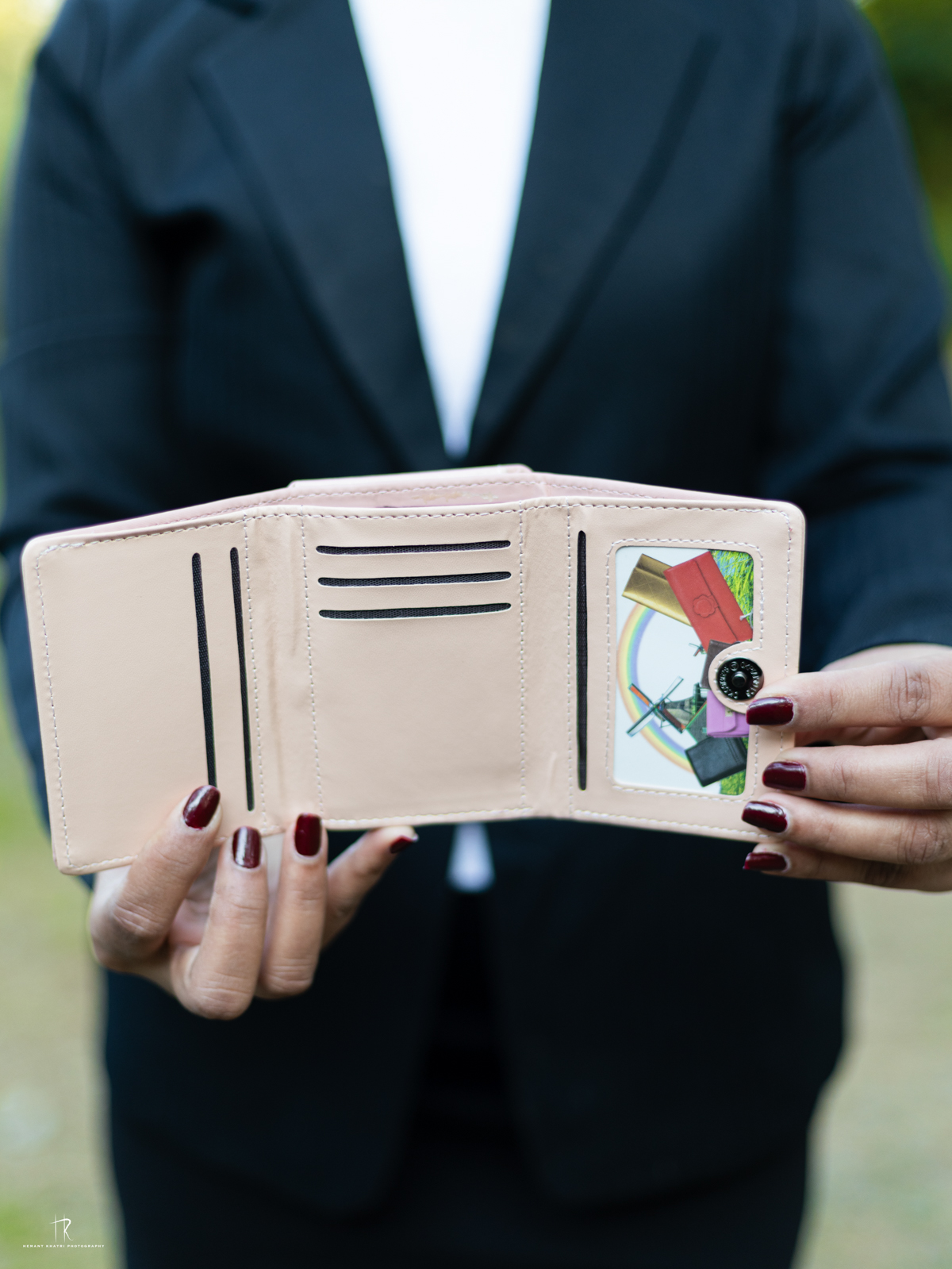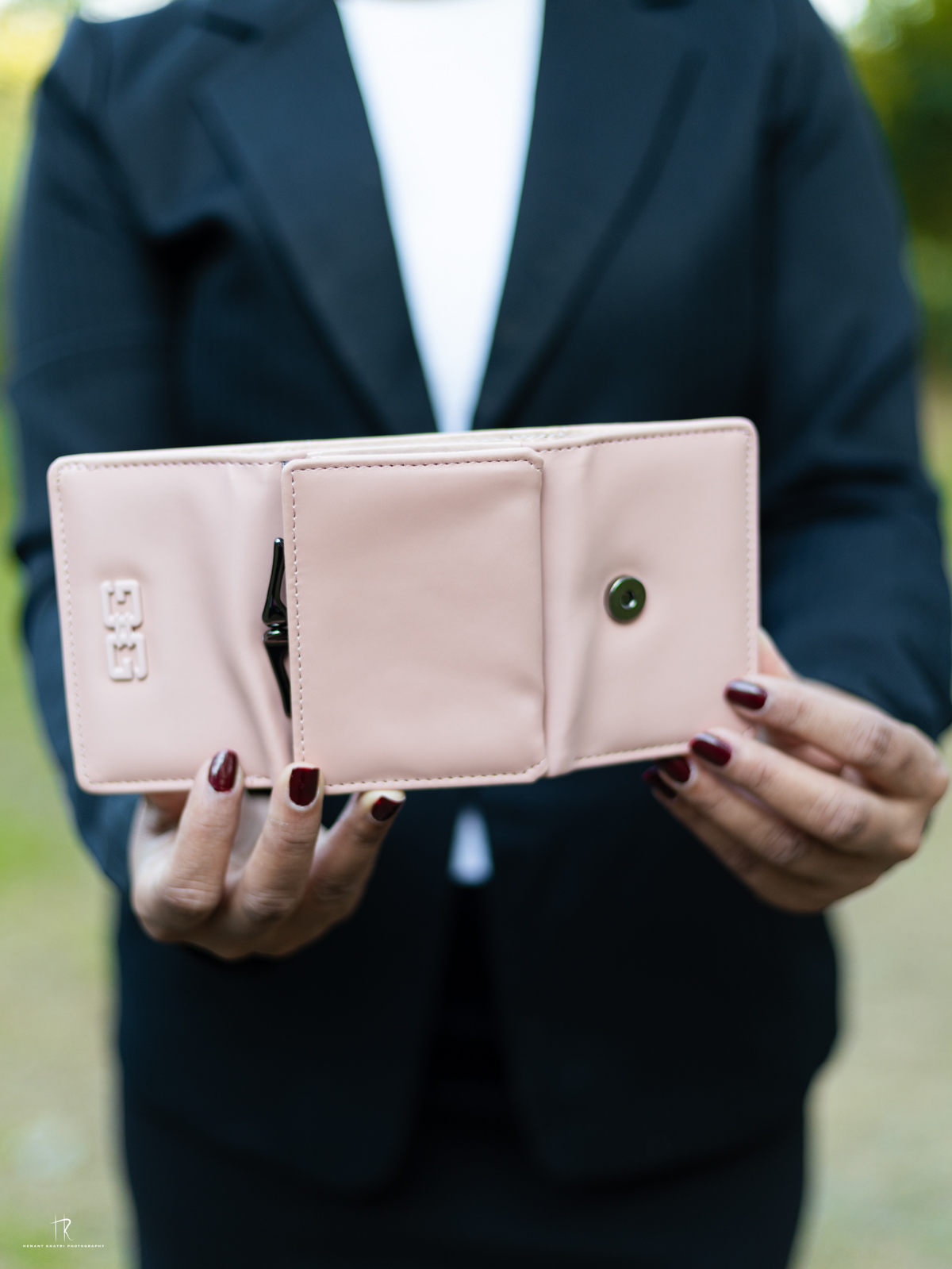 A soft pink, compact wallet with multiple compartments for cash and cards. Its stylish and minimalist design makes it an everyday essential.