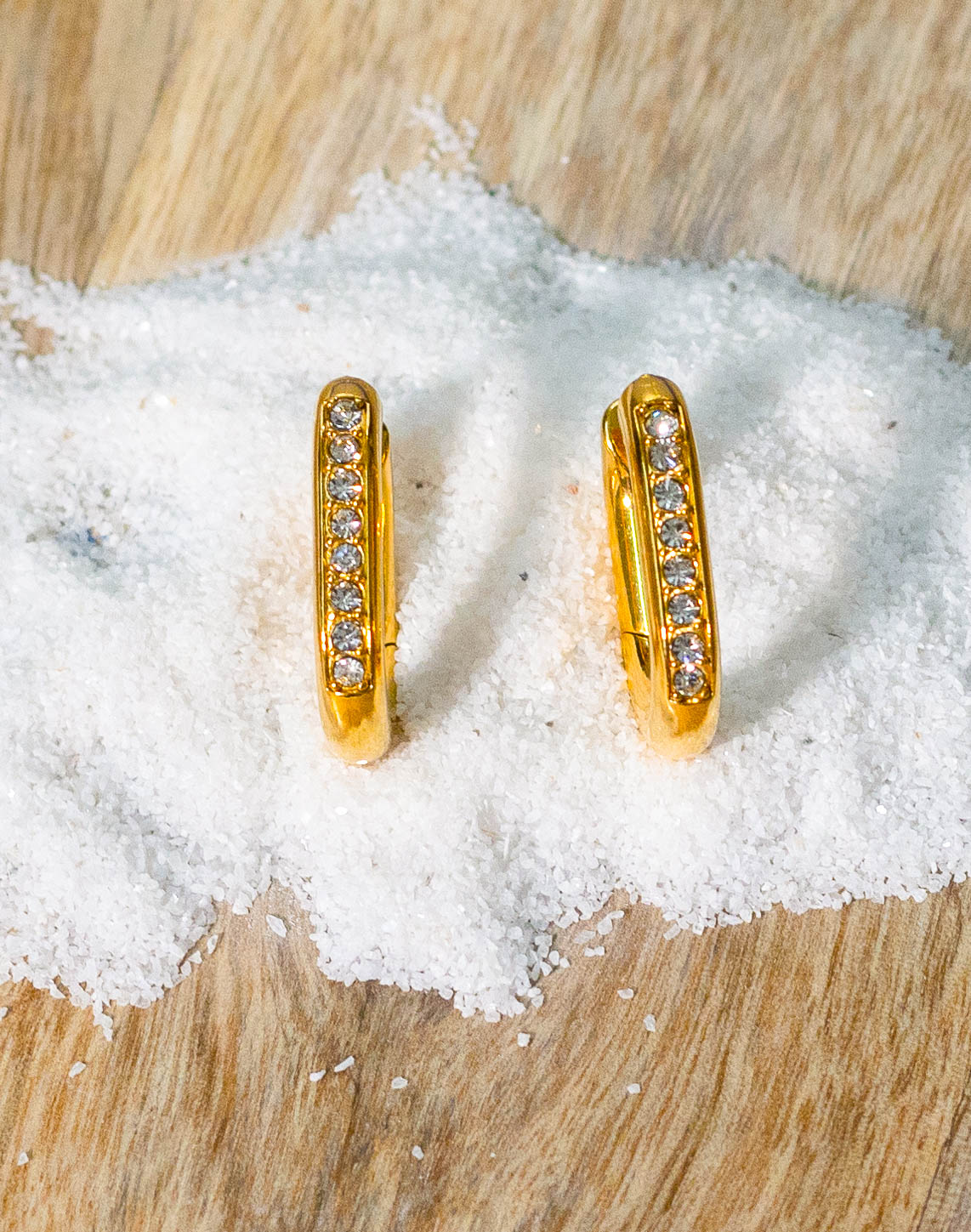 These chic hoop earrings feature a sleek, gold-plated design accented with sparkling crystals along the front. The classic hoop shape offers a versatile look that complements any style, from casual to dressy.Lightweight and comfortable for everyday wear